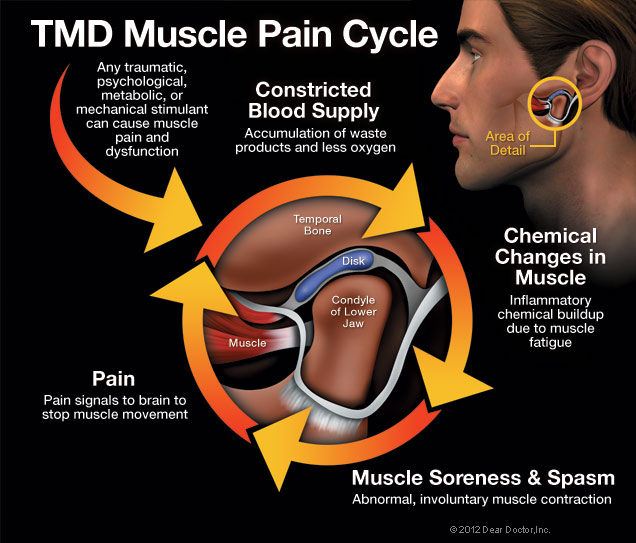 TMD, then, describes a group of conditions characterized by pain and dysfunction of the TMJ and/or the muscles surrounding it. It's not always so easy to figure out exactly what's causing these symptoms, but the good news is that most TMD cases resolve themselves with the help of conservative remedies that you can try at home. In fact, it's important to exhaust all such reversible remedies before moving on to anything irreversible, such as bridgework or surgery.