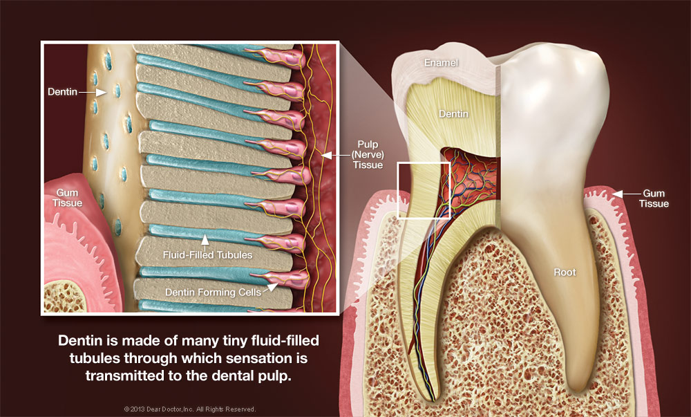 In general, tooth sensitivity results when dentin, the living tissue that makes up most of the “body” of the tooth, begins transmitting sensations to nerves deep in the tooth's inner core. The nerves relay these sensations to the brain, and they're felt as pain. To understand how this works, let's take an even closer look at your teeth.