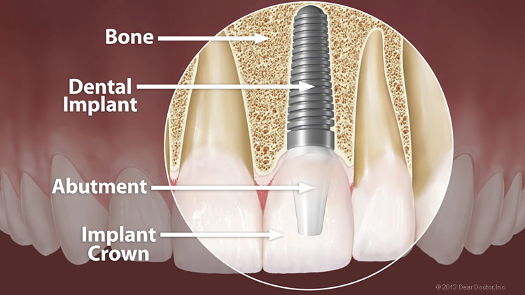 A dental implant most often takes the form of a small, screw-shaped titanium post that replaces the root-part of a missing tooth. The surgical procedure used to place an implant is actually quite minor and routine, requiring only local anesthesia in most cases. After a healing period, the implant is topped with a lifelike crown custom-made to match your existing natural teeth. Implants have a documented success rate of over 95%, which is significantly higher than any other tooth-replacement option.