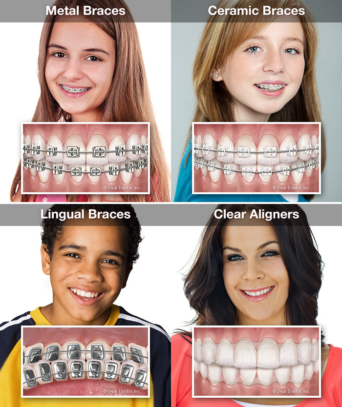 When you imagine someone wearing braces, you probably picture small metal brackets bonded to the front of the teeth, with a thin wire running through them. This time-tested style remains very popular — but it's no longer the only option. Clear braces use brackets made of ceramic or plastic which, except for the slim archwire, are hardly visible. Lingual braces are just like traditional metal braces — except they're bonded to the back of your teeth (the tongue side) so that no one can see them.